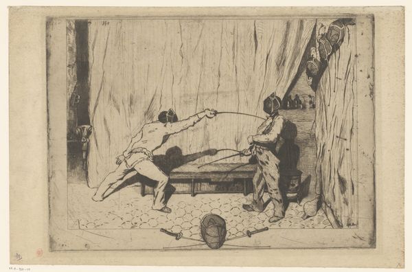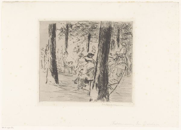 Camille Pissarro made this etching, titled "Zondagse rust in het bos", by using metal plates and acid. Pissarro was one of the few artists who experimented with etching. Looking closely, you’ll see that this involved coating a metal plate with wax, then scratching an image into the wax with a needle. The plate was then immersed in acid, which bit into the metal where it was exposed. Finally, the plate was inked and printed. This process allowed Pissarro to create an image with fine lines and subtle gradations of tone, reminiscent of a pencil drawing. But the real genius of etching is that it allows for multiples. The print medium opened a new realm of possibilities for artists who, like Pissarro, often engaged with themes of labor, class, and everyday life. The making of this artwork itself reflects a democratization of art and its accessibility to a wider audience, challenging traditional notions of art as a unique and precious commodity.
