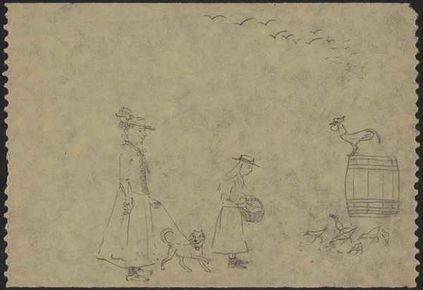 Nelly Bodenheim created this silhouette design for a book in the Netherlands, sometime in the early twentieth century. The scene represents a Dutch family in their garden. We see the parents enjoying drinks under a tree, while a maid and child play with a dog. In the background, a gardener tends to his work. The art of silhouette was popular for children’s books and decorations in this period. It’s interesting to consider how such images of domestic life reflect the strict social hierarchy of the time, with each member of the household clearly defined by their role and class. The depiction of women and servants is especially telling. To understand Bodenheim’s work better, we can research the history of Dutch children’s literature and the role of women in Dutch society during the early 1900s. We might also look into the Rijksmuseum’s collection for other examples of silhouette art from this period, paying close attention to how social roles are visually constructed.