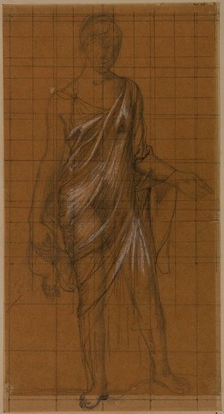 Editor: So this is James McNeill Whistler's "Draped Female Figure," a pencil drawing from around 1870-1873. The figure’s pose and the fall of the drapery have a very classical feel to them, but something about the unfinished quality gives it a modern edge. What do you see in this piece? Curator: It speaks to me of memory, and the way certain archetypes persist across cultures and time periods. The draped figure is, of course, ancient – we see it in Greek sculpture, Renaissance painting – a symbol of mourning, of grace, of the eternal feminine. But Whistler renders it in such a way that we are also aware of its impermanence, its fragility. The pencil lines are delicate, almost tentative. Do you see how the lines that delineate the drapery evoke similar representations that can be found in sarcophagi from the Roman period? Editor: Yes, I see that! It is a fleeting impression though, which feels more modern to me. What does that tension between those temporal readings suggest to you? Curator: The tension between the classical form and the modern treatment suggests, perhaps, the way the past always informs the present. We carry these inherited symbols and meanings with us, even as we reinterpret them through our own experiences. Think about the symbolic significance of veiling for example: its meaning has radically changed over time and location. And the face remains hidden from us in this sketch… Editor: That makes me think about how we are constantly layering new meanings onto old forms. Even in this quick sketch. Curator: Precisely! And in that layering, we reveal something about ourselves, about our own place in the ongoing narrative of human experience. Ultimately the symbols that artists deploy speak volumes. Editor: I see that so clearly now! Thanks for sharing your perspective! Curator: My pleasure. I am walking away from this conversation considering how forms retain symbolic resonance.