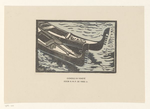 Editor: This is "Gondels," a woodcut print by Reinier Willem Petrus de Vries, created sometime between 1884 and 1952. I find the stark contrast between the black boats and the white water really striking. It feels both peaceful and a little unsettling. What do you see in this piece? Curator: Beyond the obvious aesthetic appeal, I see a dialogue with history. These gondolas, symbols of Venice, become vessels laden with meaning when considered through a post-colonial lens. How might we interpret these leisure crafts, often associated with wealth and tourism, in relation to the socio-economic realities of Venice itself, and the labor that sustains it? Editor: That's a fascinating point. I hadn't considered the labor aspect. It makes me think about the people who built and maintain these boats. Curator: Exactly. Consider the artist's choice of woodcut, a traditionally "humble" medium. Could this be a deliberate commentary on the often-unacknowledged work behind the idealized image of Venice? Does it invite us to think about who is included, and who is excluded, from this romantic vision? Editor: I see what you mean. The roughness of the woodcut contrasts sharply with the refined image of Venice. Curator: It creates a tension, doesn't it? A tension between surface and depth, privilege and labor. Art becomes a critical tool to deconstruct narratives that often go unquestioned. Editor: So, you're saying it is a reminder that art can both reflect and critique society at the same time. Curator: Precisely. By prompting reflection, art can instigate meaningful dialogue and hopefully positive transformation in the world we all share. Editor: That really broadens my understanding of the work. Thanks! I'll never see gondolas the same way again. Curator: And that is the beauty of art; the more you look, the more it tells you.