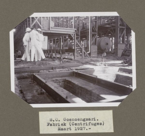 This photograph, taken in March 1927 by an anonymous artist, shows the Zuydzyde factory by centrifuges in S.O. Goenoengsari. It’s a straightforward, black-and-white image, but it offers such a raw, unpolished view of industry and labor. What strikes me is the way the photographer captured the play of light and shadow within the factory space. The composition is mostly dark, almost like a charcoal drawing, but then there's this burst of light in the middle, highlighting a group of figures working. It's not so much about documenting as it is about conveying a feeling – an atmosphere of hard work. The photograph's texture adds another layer. You can almost feel the roughness of the factory floor and the grit in the air. Thinking about how Walker Evans captured the Depression era, and how that era embraced ambiguity... yeah this is just that. I could look at this all day.