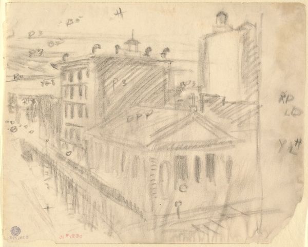 John Sloan made this graphite study, "Study for 'The City from Greenwich Village,' I," with rapid, searching marks, giving us a sense of the urban landscape forming right before our eyes. You can feel the artist working through the image, testing out lines and shapes, and it makes the whole thing feel so alive. The paper peeks through, becoming a sort of atmospheric haze. Look at the way the artist has used simple lines to suggest buildings and streets, creating depth with just a few strokes. The way he captures the essence of the city, it's almost like a shorthand for a feeling. This reminds me of some of Guston’s drawings, where he's using a similar kind of raw, immediate mark-making to capture a world that’s both familiar and strange. Art isn’t about perfect representation, it's about finding a way to express something that’s beyond words.