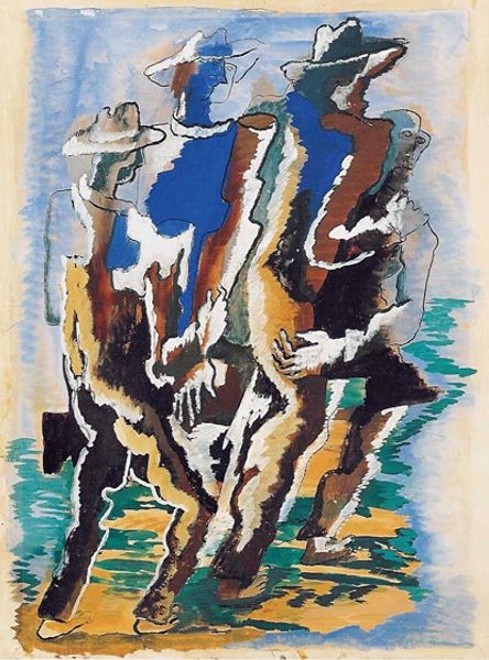 Kazimir Malevich's 'The Man with the Bag', is made with oil on canvas, using expressive brushstrokes and bold colors. The painting depicts an anonymous figure burdened by a large sack. The man's form is simplified, almost geometric, emphasizing the weight and strain of his labor, the heaviness of his load. The materiality of oil paint lends itself to the rough, textured surface, highlighting the physical effort of the worker. Malevich engages with the traditional medium of painting, but departs from academic representation by focusing on the everyday struggles of the working class. The raw, almost crude application of paint mirrors the harsh realities of labor and speaks to the social context of early 20th-century Russia, where industrialization and rural poverty were prevalent. The painting challenges the viewer to consider the human cost of labor and the social inequalities inherent in systems of production. It underscores how the choice of materials and techniques can elevate the depiction of everyday life to a statement on broader social issues, blurring the lines between craft and fine art.