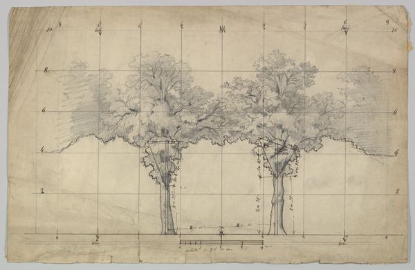 Dankvart Dreyer created this landscape study with ink on paper at an unknown date. The artist's hand is evident in every stroke, capturing the essence of the natural world through the directness of the medium. The choice of ink, with its fluid consistency, allows for fine lines and tonal gradations, giving depth and texture to the composition. The paper support, humble as it is, invites a sense of intimacy, encouraging close observation and contemplation. The grid lines, visible in the background, reveal the labor and intellectual engagement inherent in the artistic process. Dreyer's attention to detail, combined with the simplicity of his chosen materials, reflects a commitment to both the observation and translation of the natural world onto paper. In appreciating this work, we recognize the importance of materials, making, and context in understanding the artist's intent and the broader cultural values embedded within the artwork.
