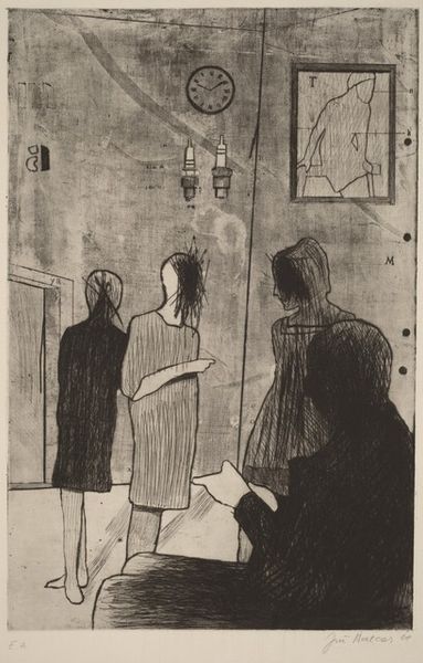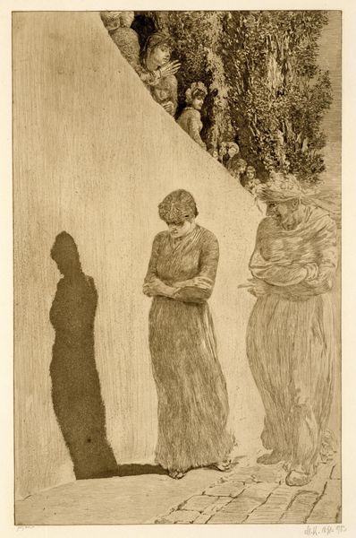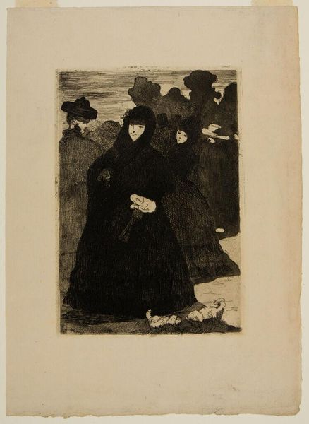 Léon Spilliaert created "Fishermen and Women," using ink and wash to capture a scene dominated by somber tones. The composition, featuring three figures set against a desolate landscape, evokes a sense of stark isolation. The artist employs a restricted palette, heightening the dramatic tension. This choice is critical, pushing the boundaries of representation and creating a psychological space where the viewers' interpretation is crucial. The horizon line, barely discernible, accentuates the figures' confinement, while the dark washes render their forms ambiguous and spectral. Spilliaert’s manipulation of light and shadow serves a dual purpose: it obfuscates details, challenging our ability to see clearly, and simultaneously reveals the emotional weight carried by these individuals. This intertwining of concealment and revelation mirrors the complexities of modern existence. Ultimately, the emotional power of this work resides in its formal structure, opening up questions rather than providing answers.