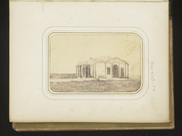 Editor: This albumen print, titled "Gezicht op een gebouw in neoclassicistische bouwstijl" or "View of a Building in Neoclassical Style," by Jan Wendel Gerstenhauer Zimmerman, was created sometime between 1862 and 1870. There’s something so compelling about the crisp details rendered through this photographic process. I wonder, what catches your eye about this piece? Curator: I'm fascinated by how the albumen process itself shapes our understanding of this building. Albumen, derived from egg whites, was a crucial ingredient, directly implicating the domestic sphere in the making of this grand architectural image. How does this "kitchen craft" contrast with the monumentality it depicts? Editor: That's an interesting angle. So the value is not only in the photograph itself but in thinking about where its material components come from and what that tells us? Curator: Precisely! The act of turning eggs, a mundane, everyday item, into the means of capturing and preserving an image of neoclassical architecture reveals the material conditions that allowed such documentation and dissemination of architectural ideals to occur. Moreover, the very choice of neoclassicism, evoking ancient Rome, hints at the aspiration of those constructing and consuming this image. Editor: So, considering this in relation to its materials and what was being represented can lead us to explore deeper connections about labor, class, and the values held at the time of its making. Thank you; I will never look at an old photo the same way again! Curator: Indeed. Thinking about art through its materials helps reveal the economic and social frameworks of its production and consumption. Now you've got me thinking more about that.