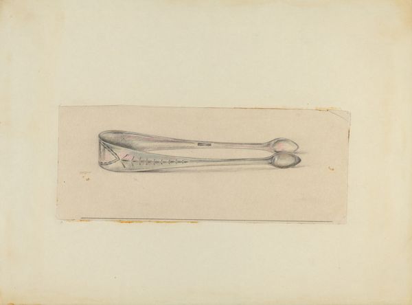 Curator: "Silver Knife," a drawing in pencil and possibly silverpoint by Charlotte Winter, around 1936. What do you notice first? Editor: It's deceptively simple. I mean, the composition and tone are quiet, muted, almost ghostly, but the draftsmanship is incredibly precise. A real exercise in rendering form. Curator: Indeed. The almost clinical representation removes any sense of overt value. Given Winter's socio-political consciousness, what is the work communicating? It does after all focus on cutlery. Who owned these knives, and what was the cultural context of silver in the mid-1930s? Were they family heirlooms memorialised during economic instability? Editor: Possibly. I'm more struck by the subtle light play—the metallic sheen implied through delicate gradations of pencil. Note the careful delineation of each facet of the handles, the curvature of the blades—there is a strong geometric quality about it that interests me. The parallel lines create rhythm, and invite the eye to track along the metallic surfaces. Curator: And within the inter-war period in which it was produced, the restrained nature is also interesting. Consumption habits had undergone profound alterations. Such material, as depicted in Charlotte Winter's piece, can tell us so much about social strata. We might then see it in dialogue with the domestic realities facing ordinary Britons. Editor: Undoubtedly. It's tempting to dive down sociological routes and contextual possibilities, but its quiet refinement and precise mark making is an important quality of the artwork. Curator: It asks us, then, to reconsider the narrative power in the everyday, and the economic landscape reflected even in a silver knife. Editor: Yes, to explore this artwork beyond the surface requires considering Winter's refined draftsmanship, use of composition, and a bit of close seeing.