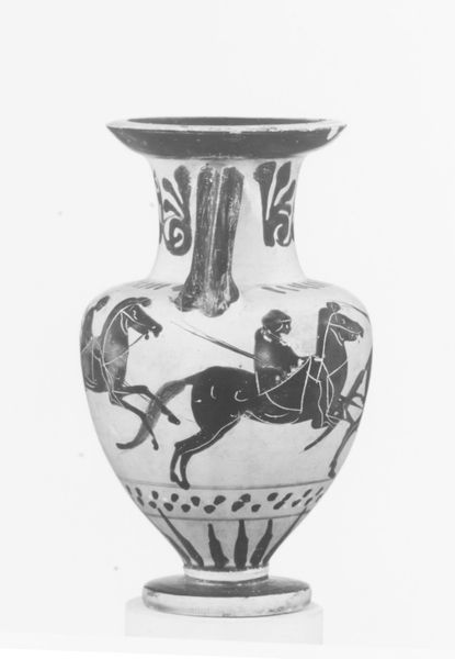 Curator: This is John Flaxman’s 1793 ink drawing, “Illustration to Odyssey”. Encased within a circular border, the simplified scene captures a dynamic moment, a stark contrast in black and white. What strikes you most about this composition? Editor: The boldness of the lines, and the way he captures movement with such simplicity. But also the depiction of women here – it seems almost… violent? How might this portrayal connect with the broader social and political climate of the late 18th century? Curator: Exactly. Flaxman was working during a period of massive social upheaval, the French Revolution and its aftermath. Considering the ancient Greek source material, the Odyssey, alongside these contemporary events, we can start to unravel a narrative about power, gender, and societal order. Think about the visual language here – who is in control? And how does Flaxman use the female form to symbolize concepts like vulnerability and dominance? Editor: So you're saying it’s not just a straightforward illustration of a scene from Homer? The way she's posed feels very deliberate... Is she enacting agency or is she still objectified despite the aggressive positioning? Curator: Precisely. The piece resonates with complicated issues of female representation. Do we interpret her as a symbol of female agency, a resistance against patriarchal norms? Or does the artistic process reinforce existing inequalities by commodifying feminine distress for spectator consumption? Editor: That makes you consider a lot more beyond the image. This deepens the layers of analysis from an initial interpretation to really digging deep. Thanks! Curator: It shows that every detail is charged with historical meaning. To see art this way challenges conventional art analysis and makes space for broader conversations on topics of social justice.