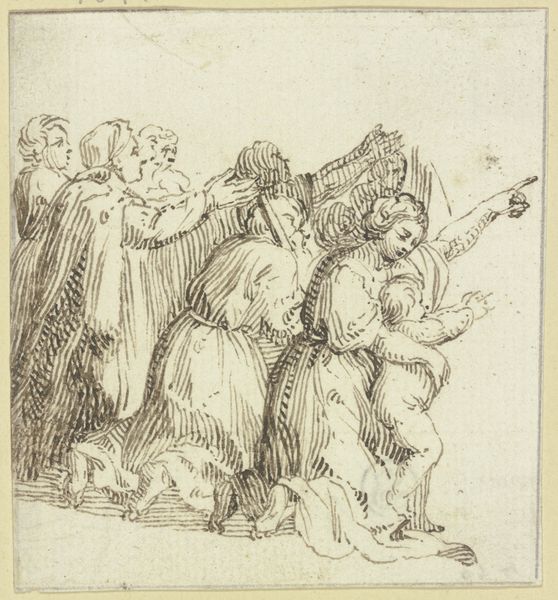 Editor: Here we have “Enthauptung der Heiligen Katharina”— or, "The Beheading of Saint Catherine" by Jacopo Chimenti, also known as Da Empoli. It looks like an ink drawing. It's unsettling, the composition… I can't quite put my finger on why. What do you see in this piece that I might be missing? Curator: This work operates within a powerful visual and historical context. Consider the role of the Städel Museum, a public institution, in displaying this depiction of religious violence. What impact might the display of such an image have on a modern audience? Editor: That's an interesting point. So the museum's choice, is it almost…political? Curator: Absolutely. Depictions of martyrdom were highly charged in the Renaissance and Reformation, especially because of competing claims on religious authority, and that history follows the work into our own time. The violence enacted on Saint Catherine—the brutal, casual way the executioner hoists the sword—speaks to broader themes of power and the suppression of dissenting voices. Consider who controlled the narratives and images of saints and why. How might such control reinforce existing power structures? Editor: So it’s not just about the literal scene, but also the political and social messages embedded within it? It challenges my understanding of religious art as purely devotional. Curator: Exactly. This piece compels us to examine how art functioned within complex social, cultural, and religious landscapes, both then and now. And of how we encounter this history in institutions with their own agendas. Editor: I never thought about the political side of religious artworks. This insight gave me so much to think about regarding the politics of display! Curator: And hopefully inspires a deeper interrogation into the institutions we trust to teach us.