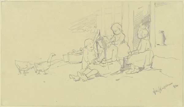 Editor: Here we have an ink and pen drawing on paper, titled "Tavern Scene" by Rudolf Hesse. There’s no date, but it really evokes the feeling of a quick, on-the-spot sketch of everyday life. I'm struck by the contrast between the crowded tables and the lone figures on the edges. What stands out to you when you look at this piece? Curator: The tavern scene provides a glimpse into the social fabric of its time. Without a date, pinpointing the cultural context is difficult. However, the very depiction of a tavern—a public space—suggests a democratizing force at play. Art capturing these environments, particularly scenes of leisure, emerged as social structures evolved. The figures themselves – the different classes represented, or suggested by their posture and clothing – offer clues to societal hierarchies. Editor: So, you are saying that this isn’t just a casual drawing, but maybe a snapshot of societal changes? Curator: Precisely! And it raises interesting questions about who gets to be represented, and how. Consider the artist’s perspective: are they an insider or outsider? Are they idealizing or criticizing the scene? Also, where would such a drawing be displayed? A salon? A private collection? Its reception would have further shaped its meaning. What do you make of the grouping of figures? Editor: I guess I hadn't thought about it that deeply, I mostly saw the different interactions. The figures, particularly around the tables, seem very interconnected, while the person with the walking stick almost seems excluded. I'll try to remember that art isn't created in a bubble and its context affects its message. Curator: Indeed. Examining "Tavern Scene" allows us to understand not only Rudolf Hesse's artistry but also how such a seemingly simple drawing engages with social structures, access, and representation.