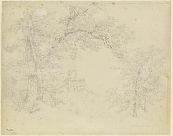 Anton Radl made this pencil drawing of a forest scene with a church and lake, likely in Germany, around the turn of the 19th century. It reflects the Romantic era's fascination with nature and the sublime. The placement of the church within the landscape creates a sense of harmony between the natural and the spiritual realms, which was typical of Romanticism. But, it also presents an interesting institutional question: what is the role of the church in this society? In the wake of the Enlightenment, traditional religious institutions were in decline, but this drawing seems to suggest that there was still a place for spirituality. Historical archives would tell us how landscapes were conceived at the time and how institutions like the church played a role in this. The meaning of this artwork is contingent on its historical and institutional context.
