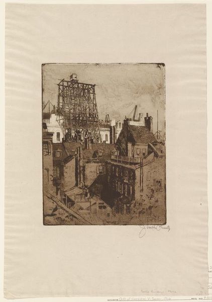 Philip Zilcken's etching captures a Parisian street with the Pont Neuf. The somber chimneys, dark roofs, and rows of windows under a cloudy sky create a palpable, melancholic mood. These visual elements are deeply symbolic. Think of the chimney, an age-old symbol of the domestic hearth, now looming over a city street, suggesting a fragmented sense of home. The windows, reminiscent of eyes, reflect a collective memory of urban life, observing and being observed. They echo across time, recalling the watchful eyes in Renaissance portraits, always hinting at unseen stories. The Pont Neuf, meant to connect, is seen in the distance, as if unreachable. There is a psychological tension here: a yearning for connection set against the isolation of urban existence. These symbols of home, observation, and connection continue to resurface, evolving in meaning, yet forever tied to our subconscious understanding of belonging and alienation.