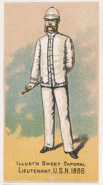 "Promenade," from the "World's Dudes" series, was created by Allen & Ginter Cigarettes as a collectible card. These cards, popular in the late 19th century, offer a glimpse into the social and cultural values of the time. The figure, identified as one of the world's "dudes," is presented as a spectacle of masculinity. His elaborate, almost theatrical, attire and leisurely promenade reflect the leisure and consumerism enjoyed by privileged men. Yet, this image also exposes the constructed nature of masculinity, revealing how identity is performed through clothing, accessories, and social rituals. Consider the power dynamics at play. Allen & Ginter were part of a larger industry that profited from the widespread use of tobacco, impacting public health and labor practices. This card, meant to be collected and enjoyed, is also a product deeply embedded in a complex web of social, economic, and health issues. How does this inform our view?