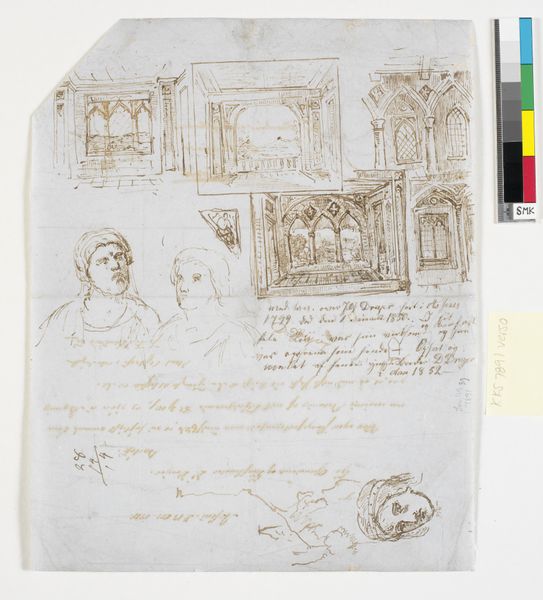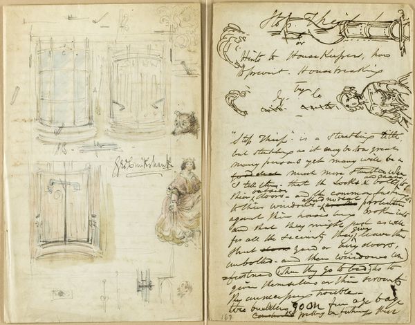 Curator: This is an open notebook page by Jérôme Charles Bellicard, dating from around 1750 or 1751, titled "Notebook with Views of the Excavations at Herculaneum and of Other Italian Cities". Editor: Wow, it’s like stumbling upon an architect's personal sketchpad. So many ideas captured raw. There’s a definite sense of… I don't know...melancholic beauty. You can almost feel the weight of history embedded in those faded ink lines. Curator: Yes, a tangible record of Neoclassical interests emerging in response to renewed excavations. Notice how Bellicard meticulously delineates both architectural plans and elevations. Editor: I'm drawn to the rough-hewn nature of the drawing, almost unfinished, giving it an intimate feel. I especially like the jars – the ink seems to flow organically. Curator: Indeed. He utilizes ink on paper to dissect and understand the structures he observed. Semiotically, the line weights themselves convey a sense of spatial depth and light, despite the limited tonal range. Editor: Makes you wonder, what was his daily life like, strolling amidst those ancient ruins, a quill pen in hand. The details about these antique artifacts really highlight a renewed reverence for classical antiquity. Curator: The inclusion of multiple Italian cityscapes highlights the grand tour tradition, emphasizing observation, documentation and a search for the ideal classical form. Editor: To me, it’s about that impulse to capture something fleeting. It is like a whisper from the past…that's a lot to unpack. Curator: A potent testament, isn't it, to the enduring allure of antiquity viewed through a scientific lens?