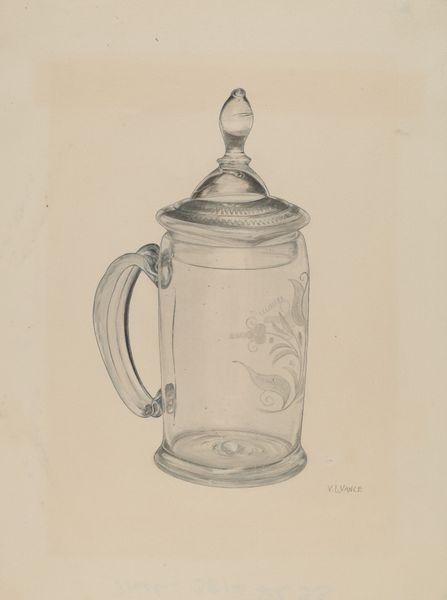 Harry Goodman made this drawing of a pewter mug, and you know, it’s interesting how he coaxes out form with just line. It’s all outline, like a coloring book waiting to happen. I love the way the lines waver, suggesting the subtle irregularities of a real object. Notice how the handle swells and curves, almost like a cartoon. It’s not just a functional part of the mug; it’s got personality. The stippled background is a nice touch, too. It sets the mug in a kind of atmospheric space, making it feel less like a simple object study and more like a portrait. This piece reminds me of some of the early Pop artists, like Andy Warhol, who took everyday objects and elevated them to art. But Goodman’s drawing has a handmade quality that sets it apart. It’s a humble, unassuming piece, but it’s full of charm.