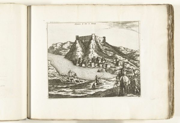 Curator: Welcome. Before us, we have an engraving from around 1702 titled, "Gezicht op Nadin in Kroatië," or "View of Nadin in Croatia." Editor: It looks like a dreamlike fortress presiding over the landscape. There's an almost surreal quality in how starkly it's rendered against that white sky. Curator: The anonymous artist captured Nadin using meticulous lines, a signature characteristic of baroque printmaking. Note the composition's reliance on sharp contrasts between light and shadow. Editor: Baroque art often reinforced existing hierarchies. I'm interested in how this cityscape functions within a colonial gaze. The rendering is precise, but whose vision is centered? What was Croatia under Austro-Hungarian rule really like? What stories from marginalized people aren't visualized here? Curator: While I understand that point of view, consider how the formal qualities invite a deeper understanding of place. See the artist's attention to verticality; from the hilltop, the spires ascend, reinforcing a spiritual and perhaps earthly power structure through visual cues alone. Editor: Those same "visual cues" may reinforce colonial narratives of domination. Look closer. What power does an anonymous artist hold? And what relationship did the Dutch have with Croatian territories at that time? Visualizing subjugated people becomes another form of oppression. I find myself grappling with who profits from this landscape and at whose expense. Curator: These are valuable contextual considerations that prompt reflection beyond mere visual appreciation. Perhaps what we observe isn’t simply the depiction of a town, but also the rendering of an idealized or ideological construct of order, observed and reproduced. Editor: Precisely! So, while we engage with the detailed aesthetic, we must also question the embedded power dynamics inherent in its representation. It urges us to think critically about history through a lens of visibility and erasure.