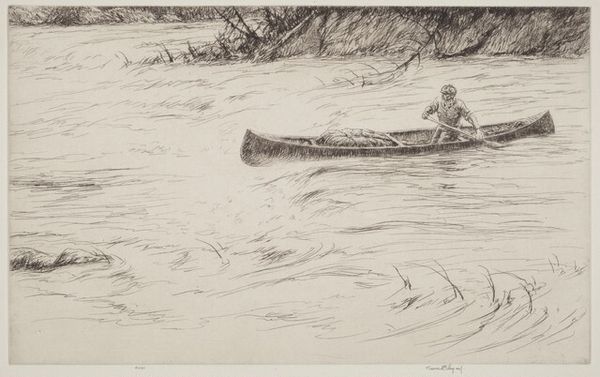 Curator: Monet, the master of light, also had a deft hand with graphite, as we see in "Two Men Fishing." What strikes you first about this unassuming sketch? Editor: The quiet. It feels like a memory, almost faded, of stillness and reflection. The figures in their boats seem utterly absorbed. Curator: Fishing, of course, has long been a potent symbol. Think of it as a metaphor for patience, but also for the pursuit of the unknown, of what lies beneath the surface. Editor: And the boats? Vessels of the soul, perhaps, carrying us across the waters of life. Or maybe just boats, and I'm overthinking it. Curator: Monet was a genius at capturing the everyday, elevating it, and finding a deeper truth in simple moments. I suppose that's what I see here. Editor: Yes, and I see a quiet invitation to just pause, be still, and see what surfaces.