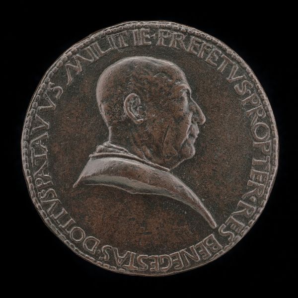 Editor: This bronze medal, created around 1480 by Bertoldo di Giovanni, depicts Mehmed II, the Ottoman Sultan. It's incredibly detailed for its size. What strikes me most is how it presents him, not just as a ruler, but as an individual. What do you see in this piece? Curator: This medal isn't simply a portrait; it's a complex negotiation of power and identity during a period of intense cultural exchange and conflict. Here, we see a Renaissance artist portraying a figure demonized in the West. The very act of creating this medal can be viewed as a commentary on the relationship between Europe and the Ottoman Empire. What does it mean to monumentalize a figure deemed an "outsider," a threat? Editor: So, the medal itself becomes a statement. Was this portrait intended for a particular audience? Curator: Absolutely. These medals were often diplomatic gifts, exchanged between courts. They served as tangible representations of power, but also tools for forging alliances. Who received this medal, and what messages were they meant to receive? What do we know about the dialogues and power struggles during that era, in the context of Italian politics? Editor: That’s a fascinating way to look at it. It makes me consider the political climate differently. Curator: It forces us to consider beyond aesthetic appreciation and confront history and power relations. The work is evidence of cross-cultural contact in a fraught era, but prompts important questions about representation and the gaze. It can inspire further consideration of cross-cultural dialogues today. Editor: It's definitely given me a lot to think about. Thanks for sharing this perspective!