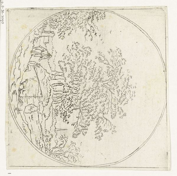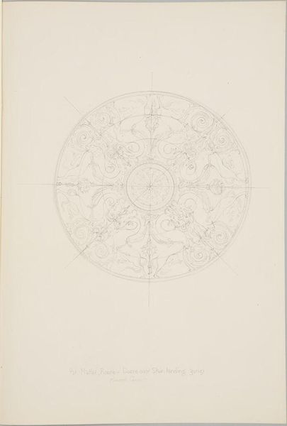 Carel Adolph Lion Cachet created this circular design with graphite on paper. The composition centers around a meticulously drawn circle, its interior filled with stylized floral motifs and curvilinear shapes. The graphite lines vary in pressure, creating subtle tonal contrasts that give depth to the design. The drawing explores symmetry and balance. Three radiating lines extend from the circle's perimeter, suggesting an underlying structure that governs the composition. The floral elements, while decorative, are rendered with a precision that recalls the artist’s interest in the interplay between organic forms and structured design. The careful hatching within the circular form adds a layer of texture, contrasting with the smoother lines of the floral patterns. Cachet’s approach to design reflects a broader artistic concern with how abstract forms can convey meaning. This design invites us to consider how even the simplest shapes can be organized to create complex and visually engaging patterns. Such forms represent a continuous process of artistic interpretation and expression.