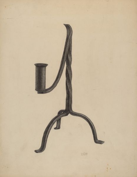 John Petrucci made this rush holder sometime between 1855 and 1995 with what looks like watercolor. He's so restrained with his palette, sticking to browns and greys, and I like the way he’s let the paper breathe. It's all about capturing a feeling, and a process. Look at the way the paint is applied. It's thin, almost transparent in places, letting the paper's texture peek through. The three little legs which come down and out, away from the main structure, have these funny curves. It feels like he's captured something essential about the object, not just its appearance but its spirit. This piece reminds me a little of Giorgio Morandi's still lifes, in the way he manages to find poetry in the everyday. It’s about embracing ambiguity, suggesting rather than insisting, leaving space for our own interpretations.