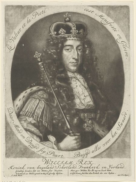 This is an undated engraving of William the Third, Prince of Orange, made by an anonymous artist. In it, we see William portrayed as King of England, Scotland, France, and Ireland. In this period, images of royalty were carefully curated to project power and legitimacy, and prints like this one played a crucial role in shaping public perception. The Dutch Republic, where this print was likely made, had a thriving print culture, and images of William circulated widely, particularly after he became King of England in 1689. The choice of language for the text at the bottom of the engraving is interesting. It is printed in Dutch, rather than English, suggesting it was made for local consumption. To fully understand the significance of this print, we can delve into the archives, exploring how images of William were used to promote his political agenda. By studying the printmaking industry of the time, we can gain insight into the social and political forces that shaped its production and reception.