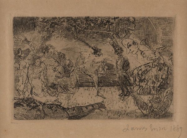 James Ensor crafted this etching, “The Fantastic Ball,” teeming with figures donned in grotesque masks, each a player in a dance macabre. Here, the mask is not merely a disguise but a symbol, a potent emblem of concealed identities. We can trace the mask’s lineage back to ancient rituals, where it served as a conduit to the divine, transforming the wearer into something other, something more. Yet, in Ensor's hands, the mask morphs into a vehicle of social satire, echoing the commedia dell'arte, where characters exaggerated human foibles, unveiling uncomfortable truths about society. The mask's enduring power lies in its ability to evoke primal emotions: fear, fascination, and a deep, subconscious recognition of our own hidden selves. It is a symbol that reappears throughout art history, a constant reminder of the fluid boundary between appearance and reality, truth and deception, continuing its cyclical journey through our collective psyche.