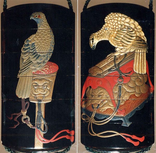 This is an Inrō case by Kajikawa Hidetaka, whose dates are unknown. The artwork is undated, but made with lacquer and gold. Inrō were status symbols in Japanese society, often worn by samurai and wealthy merchants. They were small, segmented cases used to carry personal items like seals or medicine, reflecting the sartorial customs of the time when traditional garments lacked pockets. This Inrō offers a glimpse into the leisurely lives of courtly figures. The scene of one courtier attending to another's ear cleaning is intimate, while the reverse shows a courtier captured in laughter. Through these depictions, Hidetaka bridges the gap between the formality of court life and moments of personal interaction and emotion. The humor in these scenes, though subtle, invites us to reflect on the nature of human relationships. It underscores the shared experiences of joy and camaraderie, cutting through the strict social hierarchies of the time.