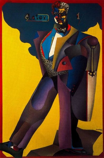 Curator: "Young Woman with an Umbrella" by Francis Picabia...it’s a curious portrait, rendered with oils. What do you make of it initially? Editor: My first impression is playful—almost mischievously so! The colours are bold, and there's a sort of joyous chaos in the composition. Does this effervescent aesthetic hold further meaning, or is it pure whimsy? Curator: Well, Picabia was deeply engaged with questioning conventional representation. This painting embodies some of his radical ideas and it feels incredibly modern, despite appearing to come from a bit of a mysterious, hard-to-pin-down date! The umbrella itself, boldly striped, and the woman’s facial features, fragmented, suggest a refusal to depict reality straightforwardly. What can you glean from these choices? Editor: To me, the disjointed features read as a commentary on identity. The hands obscuring the eyes... it suggests concealed truth, or perhaps multiple perspectives. The Fauvist and Cubist influences clash with Art Nouveau flourishes, like stylistic arguments unfolding right on the canvas. A bit defiant, would you agree? Curator: Absolutely. And consider the period in which Picabia was working – pre and post World War I. There was a cultural mood of disenchantment with old social systems and their representations. His embrace of paradox was revolutionary, a challenge to established art circles. This feels deeply woven into art of the avant-garde, especially in Dada circles! It seems fitting, even inevitable that he would break from earlier work that showed classical influences! Editor: The colors amplify the disquiet. The reds and blues feel dissonant, contributing to a sense of unease beneath the surface merriment. This tension pulls me into questioning how social conditions shape our emotional landscapes—what might these clashing colours say about that very tension and a world upended by a war? Curator: Picabia challenges the viewer, demanding engagement, as he often did! There are moments here of great dissonance and incredible playful lightness – they come together to form, at least for me, something akin to life. Editor: Yes, he mirrors how social norms can constrict, provoking dialogue and daring us to dismantle established narratives and maybe that’s why even though the colours feel somehow slightly off-key, they still leave the senses singing.