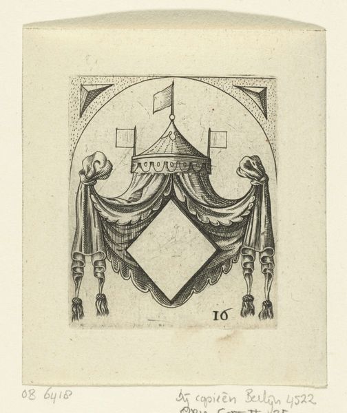 Editor: So this is an engraving from 1625, titled "Wapenschild met ruitvormig veld in een ovaal," which translates to "Coat of Arms with a Diamond Field in an Oval." It's at the Rijksmuseum, and it's anonymous. I'm immediately struck by the detailed ornamental framework and how that emphasizes the empty diamond in the center. How would you interpret its function, historically? Curator: Well, heraldry, even in a drawing, isn't just about decoration; it's deeply embedded in the social and political structures of its time. A blank shield, like this, could be a template, or even a challenge. It suggests potential nobility, land ownership, lineage, things powerful families and institutions cared deeply about. Editor: So it's like an advertisement or a signifier of a place in society? Curator: Precisely! But even more specifically, consider the time. 1625 sits squarely within the Dutch Golden Age. The rise of wealthy merchants and burghers challenged the old aristocracy. These blank shields could have been aspirational symbols for them – visually staking a claim to status and power. The level of detail in the Baroque framework would signal that the family has the resources and good taste to engage this style. Editor: It’s almost a form of early advertising or propaganda, influencing perceptions of power. The emptiness of the diamond shape then suggests less about lineage and more about social aspiration. Curator: Absolutely. What I also find intriguing is the choice of the oval. A perfect circle would project equality and wholeness, yet it's absent here. What does that say to you? Editor: Interesting point! Perhaps that reaching this elite social status doesn't occur naturally, like a perfect circle, and instead takes shaping and directed effort. It is a status sought by many, not gifted to all. Thanks for the new insight, it makes it feel so much more relevant and telling of the culture than it did before.