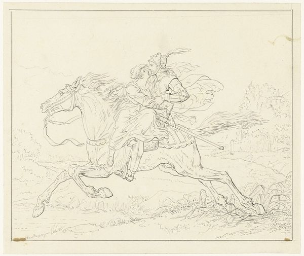 Arnoud Schaepkens created this image of a knight on horseback using etching. Here, we see the knight brandishing his sword high, a bold symbol of power, justice and chivalry. This motif has ancient roots, resonating with images of conquering heroes across cultures. Consider, for instance, equestrian statues of Roman emperors, where the raised arm signified authority. The mounted warrior transcends mere portraiture, tapping into a collective memory of heroism. Think of the psychological impact: the horse, a symbol of untamed vitality, combined with the knight, suggesting control and nobility. But look closer: the fragility of the etching lines hints at vulnerability beneath the armor. Over time, the heroic knight has reappeared in many forms, from medieval tapestries to modern cinema. Each era reframes the image, layering new meanings onto the old. The symbols endure, yet their interpretation constantly evolves, reflecting our changing ideals.