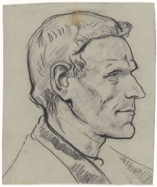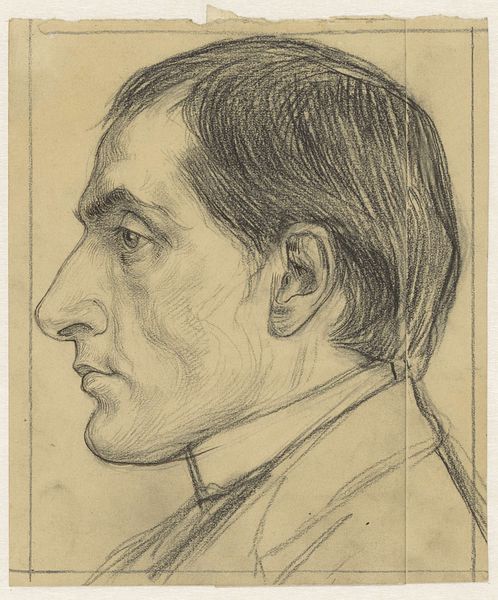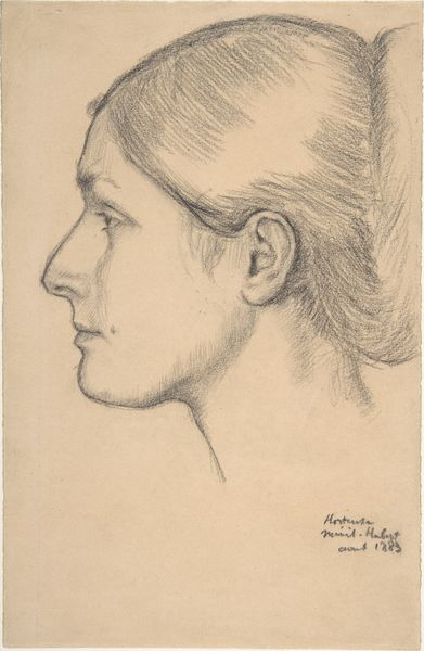 Curator: We’re now looking at Charles Demuth’s “Portrait of Augusta B. Demuth [the artist’s mother],” dating from 1896. It’s a delicate pencil drawing. Editor: It’s haunting, in a way. The gaze avoids us, and the soft lines feel like a fading memory. You can almost feel the texture of the paper beneath the pencil. Curator: Absolutely. Considering it's a portrait of his mother, this distancing could signify so much. We often portray maternal figures as nurturing, warm. But here, Demuth depicts her almost like a stoic Roman bust, removed and classical. Perhaps it reflects the complexities inherent in family relationships. The gaze turned away definitely enhances this. Editor: It does make you think about the context in which it was created, right? The labor that went into producing the pencil itself—graphite mined and refined, wood carefully shaped. And then the subtle skills to create these graduations. It’s interesting how such industrial production facilitates such an intimate portrayal. Also note how the work sits close to the edge, without traditional composition to centralize the subject Curator: A key part of his visual vocabulary, I think. Demuth’s works, throughout his career, seem to have always flirted with this boundary of raw materials—the drawing surface, for instance, or the paint itself. It certainly changes how we might read this image of motherhood. It is an object made from extracted material transformed into the delicate image. Editor: Perhaps, too, this reserved portrayal aligns with societal constraints on expressing personal emotions in that era. So much unsaid. Curator: Precisely. It's as if the drawing is holding back secrets, echoing a collective emotional restraint that might have permeated his family dynamic. This creates, paradoxically, a profound depth. Editor: Ultimately, though, it draws my attention back to the skill itself. The hand creating this representation of reality… fascinating to watch this process, and very interesting that we only get this specific look for it, from the selected technique to the choice of position. Curator: It makes one consider all the other aspects and complexities around these type of figures that we fail to capture when working to emulate them in visual work. Editor: Indeed, thanks for sharing this insight into material transformation of art production.