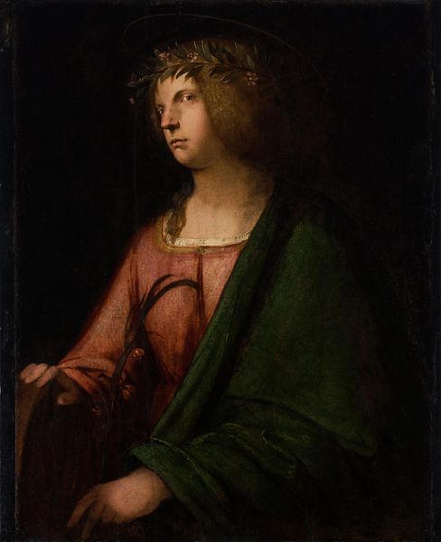 This is Bartholomeus Spranger's painting of Saint Barbara. Notice how the artist uses light and shadow to create a dramatic contrast. Barbara's face is softly lit, drawing our eyes to her serene expression, while the background is divided into starkly contrasting dark and light areas. Spranger employs a Mannerist style, characterized by elongated forms and stylized poses. The saint's elegant hands and the graceful curve of her neck exemplify this. Her gaze is directed towards the book, a symbol of her wisdom and faith. The tower in the background, pierced by divine light, alludes to her imprisonment and the miraculous events surrounding her martyrdom. The tower acts as a visual metaphor for spiritual enlightenment breaking through earthly constraints. This interplay of light and form invites us to reflect on the complex relationship between faith, knowledge, and divine intervention.