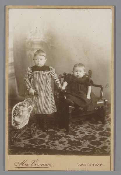 This photograph titled, 'Portret van twee kinderen met een hoepel en een pop,' was made by J. Siewe. The brown sepia tone throughout the piece gives it an aged, almost dream-like quality. It’s like looking into a memory. The details are so interesting, especially the textures. You can almost feel the lace collar on the boy’s outfit and the smoothness of the doll’s face. Then, there’s the hoop, perfectly circular, and the only real spot of light in the composition. It is held delicately by the young boy. Look how the clothing envelops the children. These heavy materials have a weight and density. It has a similar feeling to the weight in some of Paula Modersohn-Becker’s portraits of children. Both invite us to pause and reflect on time. The simplicity and directness of the image is what speaks to me most. It resists the need for a singular narrative.