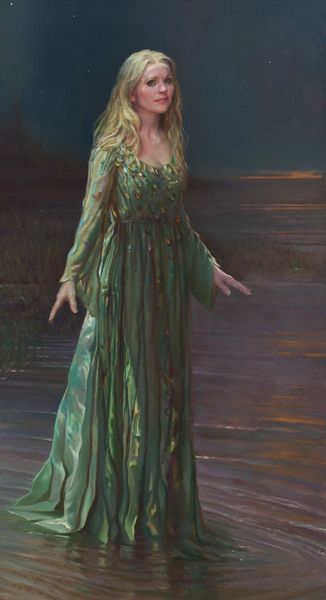 Editor: So, here we have "Circe Invidiosa," painted in 1892 by John William Waterhouse, a stunning oil painting. The colors are intense, that striking emerald green dominates, and honestly, there’s something hauntingly beautiful about it. What pulls you into this piece? Curator: Hauntingly beautiful is spot on! It's Waterhouse at his most… potent, I think. Look at the way he's captured Circe. She’s not just beautiful, she's radiating power, even resentment. The Pre-Raphaelites loved a good myth, but they also loved unpacking the psyches of these legendary figures, making them so very human. Editor: So it’s not *just* a pretty picture then? I mean, she looks like she’s poisoning the water… Curator: Oh, the water's absolutely being poisoned, metaphorically and, I suspect, literally! Notice how her gaze doesn’t quite meet ours. She's focused, intensely, on her act. Invidiosa – envious – gives us a clue. She's driven by jealousy, probably brewing some nasty concoction in that bowl for a romantic rival. Think of it as the ultimate passive-aggressive move… with potentially deadly consequences. Editor: That context makes it so much darker! Is that why the background feels so… ominous? Curator: Exactly! The dark, almost suffocating, backdrop adds to the sense of foreboding. Waterhouse masterfully uses light and shadow to amplify the drama. Tell me, what does that stream of liquid make *you* feel? Editor: It’s almost hypnotizing, but dangerous… like watching something you know you shouldn't. It's a shame because, you know, the painting is stunning! Curator: A heady combination of beauty and dread, wouldn’t you say? Maybe that's what makes Waterhouse so enduring. It feels good to acknowledge the bad. Editor: Definitely. I’ll never look at a Waterhouse painting the same way again. This was awesome.