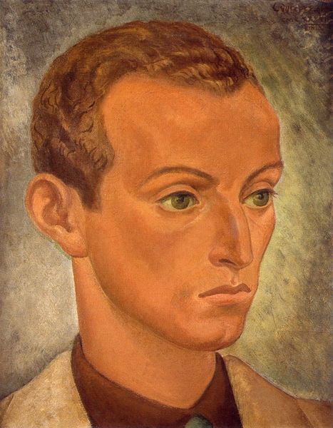 Carlos Quizpez Asín’s self-portrait presents us with a study in muted tones and geometric forms. The artist is depicted holding a dark red portfolio against a background of neutral browns, punctuated by stark rectangular blocks of ochre, creating a sense of depth. The play of light and shadow models his face, highlighting the sharp angles of his nose and brow. The composition’s structure directs our focus to the artist’s gaze, which meets ours with a directness that is both engaging and slightly unsettling. The architectural austerity of the background, with its interplay of planar surfaces, suggests an engagement with cubist principles, yet it remains grounded in a representational mode. This tension between abstraction and figuration invites us to consider the artist’s self-image as a construction, a carefully arranged series of lines, shapes, and colors that coalesce into a recognizable form. The somber palette, combined with the rigid geometry of the setting, evokes a sense of introspection, inviting viewers to contemplate the nature of identity and representation within the formal constraints of the medium.