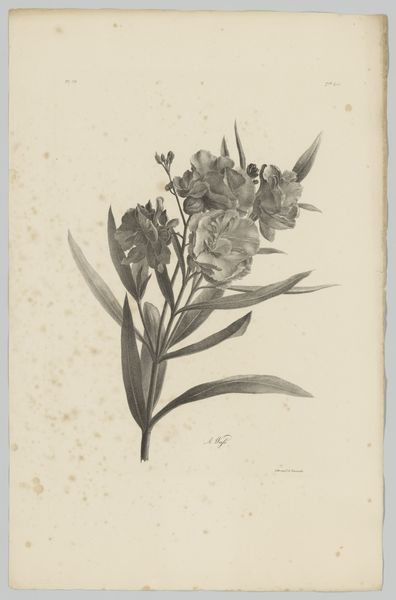 Curator: Here we have "Bouquet with Narcissus, Hyacinth and Primula" created in 1824 by Auguste Piquet de Brienne. It's a beautiful drawing, meticulously rendered with pencil on paper. It's currently held in the collection of the Rijksmuseum. Editor: My first impression is how incredibly delicate it feels. The monochromatic palette emphasizes the textures, almost as if you could reach out and feel the velvety petals and the smooth curve of the leaves. Curator: The choice of flowers is interesting, isn’t it? Narcissus, hyacinth, primula, each carries potent symbolic weight. Narcissus, for instance, often represents vanity and self-love, a reflection of the mythological figure. Editor: Yes, and it speaks to the enduring interest in the language of flowers during the 19th century. I wonder, was this bouquet presented as a gift? A coded message communicated through petals and stems? The floral piece feels restrained though; this feels more academic, less of a statement, than many I've seen from that time. Curator: It’s a good point that it might be for more scientific study. The attention to detail suggests it served as more of botanical record than a sentimental offering. The precision reminds me of works intended for educational illustrations—where capturing accurate features held more weight than purely aesthetic beauty. But as it still bears symbolic potential and meaning, can't one still see it as reflecting period sensibilities? Editor: Perhaps the artist intended to bridge the gap between art and science, something typical of the era when classifications were shifting. The fact that the drawing finds its home in a museum now indicates a change in value over time, too, from natural record to cultural artefact. Curator: Exactly! It reflects changing social attitudes, but reveals enduring, coded social and psychological undertones in its visual symbols of flowers that represent emotional and social codes for viewers today, regardless of their origin. Editor: Thinking about this artwork, and reflecting upon its cultural value, shows how even a seemingly simple still life drawing can reveal so much about art history and how historical values play a significant role in artwork accessibility and significance in present society. Curator: Absolutely! This image provides a window into the convergence of art, science, and social symbolism in early 19th century visual art, revealing a continuous dialogue through its use of specific cultural symbols.