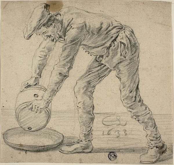 Rudolf Gudden made this pencil sketch, titled "Zeck am Eselsrücken," or "Tick on a Donkey's Back," in 1910. It depicts a man carrying buckets. But this image is about more than just the figure it represents, it's about the wider social structure. We might consider this work in the context of early 20th-century Germany, a time marked by growing industrialization and urbanization, which brought with it new forms of labor and social stratification. The sketch captures a sense of burden and hardship. The stooped figure and heavy buckets symbolize the weight of labor. The title itself is telling. A "tick on a donkey's back" suggests a parasitic relationship, perhaps commenting on the exploitation of the working class. Gudden's decision to depict this scene through a rough, unrefined sketch lends a sense of authenticity and immediacy to the subject matter. To fully understand this work, historians delve into the socio-economic conditions of the time, examining labor movements, political ideologies, and the role of art in social commentary.