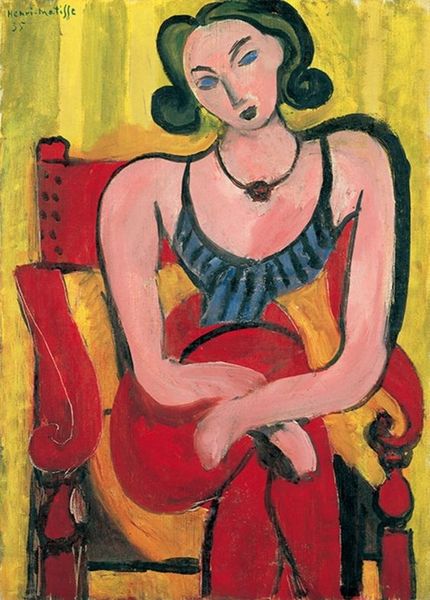 Curator: Looking at Pablo Picasso’s "Seated Female Nude," crafted in 1905 and currently housed in the Centre Pompidou, one is immediately struck by its curious simplicity. Editor: Yes, a sort of spectral presence emerges from the canvas. There’s a quiet melancholia, wouldn’t you agree? The flattened space and limited palette evoke a feeling of introspection. Curator: Absolutely. The composition is a study in contrasts. We see the delicate modeling of the figure offset by the broad, almost crude brushstrokes that define the setting. The strategic use of impasto highlights form and texture. Editor: And I wonder about its place in the burgeoning modernist art world. Considering Picasso's societal context, how was the nude figure perceived in relation to contemporary notions of female representation and viewership? It is clearly divorced from older academic traditions... Curator: It certainly pushes the boundaries. We can see him actively rejecting established artistic norms; for instance the spatial ambiguity almost dissolves the figure into the background, reflecting perhaps the anxieties of representing the human form at the dawn of the 20th century. Editor: Perhaps a reflection of how, even then, women were seen? Consider her obscured face... it seems her own individual identity matters less than her form's place in the artwork. What do you think about the little drawn figure, seemingly caged on the back left? Is that possibly an expression of his attitude? Curator: Good question. Considering that element with relation to the primary figure provides interesting commentary regarding the artist's intentions... what did he intend to achieve or express when including the faint detail on the work? Editor: Overall, it really prompts me to consider how such images participated in larger power dynamics. An interesting, but complex and thought-provoking statement from the young Picasso, it seems. Curator: Precisely. There’s so much to unpack when examining the visual language used to frame this moment. Editor: Indeed; it's these layers of historical and aesthetic nuance that make art such a fascinating field to study!