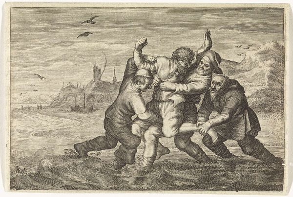 Robert von Neumann made "Card-Playing Fishermen" with lithographic crayon and ink. It’s all about mark making, and the push and pull of dark and light. The lithographic crayon is so good at creating textures, and Neumann really uses that here. Look at the planks of the deck, and the rough clothing of the fishermen, you can almost feel the grain. Then there’s the water, smooth and shiny, or the sky. These are all marks, but they give you so much information! Notice the way the light catches on the back of the central figure. This is where Neumann directs our gaze, the focal point of the composition. I am reminded of the paintings of the French artist, Gustave Courbet, especially his scenes of everyday life. There is a similar focus on the working man, and a lack of idealization. But unlike painting, there's a graphic element to this print that allows for bold statements. There's a conversation between artists that keeps going, a reminder that art never exists in a vacuum.