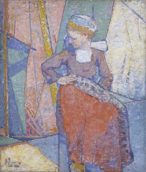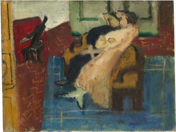 Édouard Vuillard, a French painter, rendered this scene with oil, likely in the late 19th or early 20th century. The image depicts a woman, perhaps a seamstress or domestic servant, working in a cluttered interior. Vuillard was associated with the Nabis, a group of Post-Impressionist avant-garde artists who were influenced by Japanese prints and emphasized decorative patterns and flat planes. This can be seen here in the flattening of space and the emphasis on the patterns of the wallpaper and fabrics. This image provides a glimpse into the domestic life of the French working class during a time of rapid social and economic change. The fashion for Japonisme also speaks to the rise of international trade and cultural exchange. Vuillard, like many of his contemporaries, was interested in capturing the everyday lives of ordinary people, though we must be aware of how class and social institutions frame such depictions. Understanding the social and cultural context in which this artwork was made requires us to delve into historical records, literature, and other cultural artifacts that shed light on the experiences of the working class in France during this period.