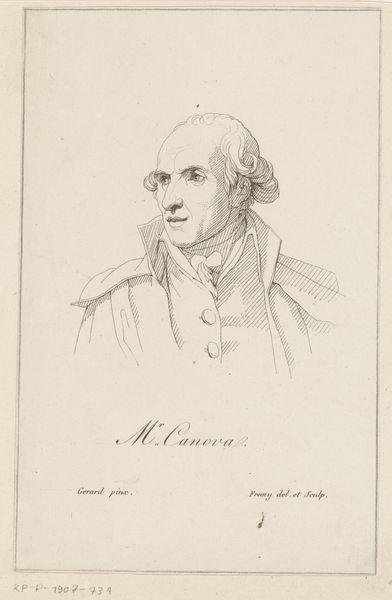 Jacob Merz made this print of Antonio Canova sometime around the turn of the 19th century. It captures the Italian sculptor Canova within a classical oval frame, a choice that immediately associates him with the artistic traditions of ancient Greece and Rome. Portraits like this one played a crucial role in shaping the public image of artists during this period. The print media allowed for wider circulation of likenesses, contributing to the idea of the artist as a celebrity. Consider the institutional context: Canova was celebrated across Europe, becoming synonymous with Neoclassical sculpture. His fame was not accidental but carefully cultivated through patronage, exhibitions, and, yes, even prints such as this. Understanding this image means delving into the world of 18th and 19th-century art institutions, exploring how artists were promoted, and examining the social networks that supported their careers. By consulting period publications, letters, and exhibition records, we can better appreciate the forces that shaped Canova's image and, more broadly, the cultural values of his time.