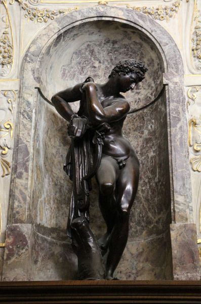 Giambologna, a Flemish sculptor active in Italy, likely made this bronze eagle in Florence during the late 16th century. The eagle, or "aquila" in Italian, was a symbol of power, often associated with Roman emperors and later adopted by European nobility. During Giambologna's time, Florence was under the rule of the Medici family, who used art and symbols to legitimize their power. The eagle, with its connotations of strength and authority, would have been a fitting emblem for the Medici. This sculpture likely served as a decorative element in one of their palaces, reinforcing their image as powerful rulers. To understand this artwork better, we can delve into the history of heraldry and the use of animal symbols in political imagery. By exploring the social and political context in which it was made, we can gain a deeper appreciation of how art served as a tool for power and propaganda.