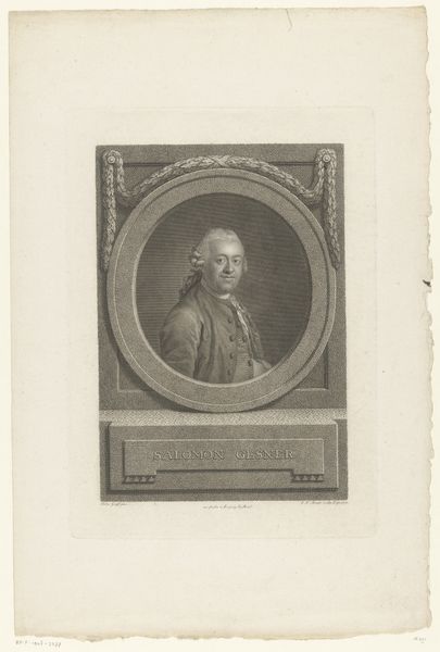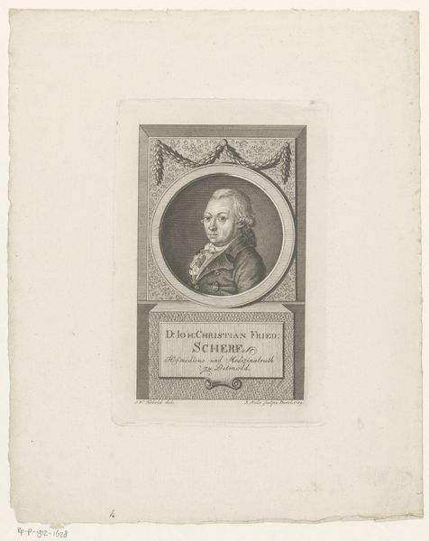 This is Aegid Verhelst's small engraving of Philipp Anton Sigmund von Bibra, made sometime in the 18th century. The composition strikes a balance between the geometric frame and the organic curves of the portrait within. Notice how the artist uses line and shape to create layers of containment. Sigmund von Bibra is encased in a circle, which sits within a rectangular frame. The frame is itself detailed with geometric patterns and decorative flourishes, adding visual complexity and a sense of formality. This structure directs our attention to the subject’s profile, rendered with delicate shading to capture his features and powdered wig. The Latin inscription below the portrait suggests a reverence for paternal virtues. Verhelst’s engraving operates within a system of signs where geometric forms suggest order and hierarchy, while the portrait aims to capture an individual’s likeness and status. By combining these elements, the artwork engages with broader cultural ideas about representation and identity during the Enlightenment. Such an approach allows us to consider how the visual language of art can reinforce social structures.