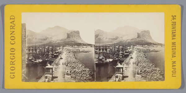 Editor: This gelatin silver print, titled "Gezicht op de haven van Ilfracombe," captures a harbor scene. It’s estimated to have been made between 1850 and 1880. The monochrome tones create a rather subdued, almost melancholic mood, wouldn't you agree? How do you see the composition working in this photograph? Curator: The subdued tonality is indeed a significant component. Focus on the interplay of light and shadow – note how it delineates the forms of the buildings and boats. The reflection upon the water adds depth, yet also serves to flatten the pictorial space. The photographer’s manipulation of focus, especially around the foreground rock formation, softens the edges, almost blurring the lines to create this rather lovely effect of atmosphere. Do you see the subtle geometric relationships between the horizontal line of the harbor and the vertical masts of the ships? Editor: Yes, I see that now, the verticals piercing the horizontal divide. I had been focusing more on the reflection, but now I see the relationships that define the pictorial space itself. Curator: Precisely. The photographer organizes the scene around a complex pattern of lines and shapes, almost seeming to abstract this slice of visual experience. Editor: It’s interesting how focusing on the formal aspects highlights the artistry involved, beyond simply documenting a place. So, focusing on those geometric relations shifts how you experience it? Curator: Absolutely. Examining the structure reveals how meaning emerges from these internal relations. How form itself communicates, beyond any mere referentiality. Editor: I now see a whole new way to think about composition, form, and the overall experience of a picture like this. Thanks. Curator: You're very welcome; the image invites endless examination.