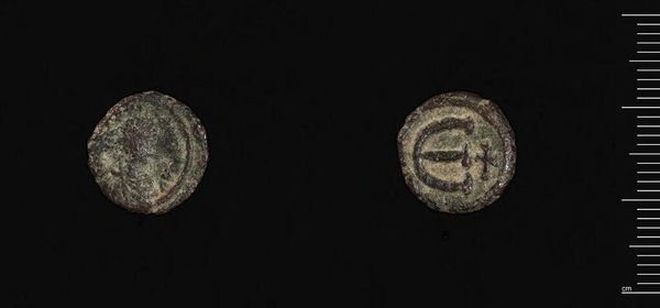 Curator: At the Harvard Art Museums, we have a "Coin of Justin II." The coin itself weighs 1.80 g. Editor: The coin looks worn and a bit crude. It speaks to the daily life of a distant past. Curator: Coins like these were not just currency. They were tools of imperial propaganda, circulating images of power and authority. Editor: The coin offers a perspective of how power and identity were communicated to the people. Who did this imagery empower and exclude? Curator: That's a question worth asking. The coin gives us a glimpse into the complexities of the Byzantine Empire. Editor: And reminds us that even small objects can hold profound stories.