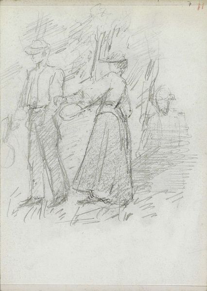 George Hendrik Breitner made this sketch of two women using pencil on paper. It is part of the collection of the Rijksmuseum. Breitner was working in the Netherlands at a time of rapid urbanization and social change. Breitner's focus on everyday life and working-class subjects, such as these women, can be seen as a departure from the traditional academic art of his time. The loose, sketch-like quality suggests a sense of immediacy and observation. The artist was documenting modern life in the burgeoning city of Amsterdam. This might have been in preparation for a painting, but it also has the quality of a quick impression of life as it unfolded around him. By studying Breitner's sketchbooks and paintings, as well as the social and cultural history of the Netherlands in the late 19th century, we can better understand the artist's intentions and the broader context in which this drawing was created. This approach enables us to see art not just as aesthetic objects, but as products of and responses to their time.