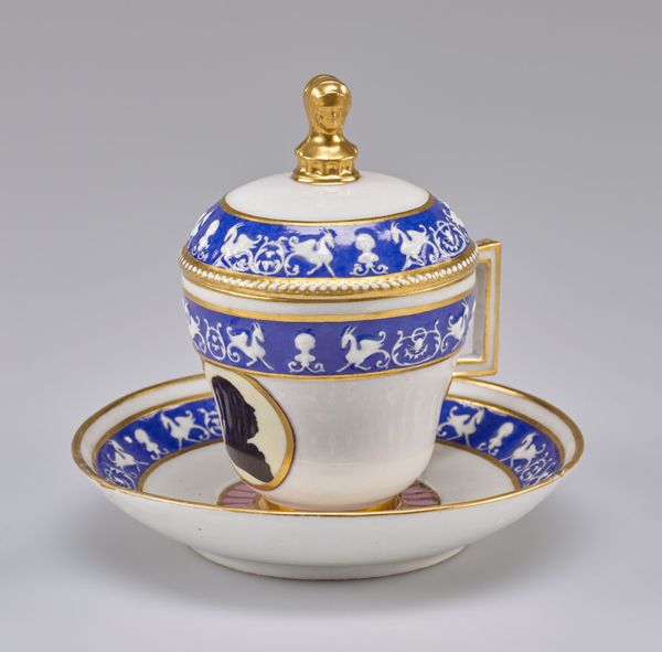 Editor: Here we have a luxurious "Ensemble for Chocolate," crafted around 1735-1740. It's porcelain with gilding, a Baroque beauty currently residing at The Met. There's something almost playfully decadent about it. What strikes you most about this piece? Curator: Decadent is definitely a keyword here! The Baroque period, with its emphasis on ornate detail, was intrinsically linked to the rise of absolutist power and its self-fashioning. Consumption wasn't merely about satisfying needs; it was a performative act that cemented social hierarchies. Who had access to chocolate, and how did they consume it? Editor: I hadn't thought about the consumption part. So, the chocolate itself was a status symbol? Curator: Absolutely. This "Ensemble" isn't just a set of drinking vessels; it's a material expression of privilege and colonial exploitation. The availability of chocolate in Europe was directly tied to the brutal labor practices in cocoa-producing colonies. Editor: That's a heavy truth. The beauty of the piece almost obscures the context of exploitation. Curator: Precisely. Consider the very act of drinking chocolate from this elaborate set, presented as a sign of refined taste, and its link to exploitation. Who benefits from this narrative, and who is made invisible? The shell centerpiece almost suggests exoticism; does it symbolize newly acquired wealth and global reach? Editor: It is mind-blowing to reflect on this piece in light of the era’s colonialism and power structures. Curator: Indeed! Examining art through such an intersectional lens—focusing on race, class, and colonial power—reveals so much more than just aesthetic appreciation. Editor: This has completely reshaped my perspective. Thank you! Curator: My pleasure! I hope we’ve all learned that art can, and often should, provoke critical engagement.