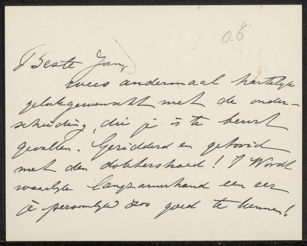 Geesje Mesdag-van Calcar crafted this handwritten letter, a humble but potent artifact, on paper. Note the graceful, cursive script; each stroke and flourish tells a story. The act of writing itself carries deep cultural significance. This form of communication is not merely a conveyance of words, it is a transfer of thought that echoes ancient inscriptions on stone tablets, and medieval illuminated manuscripts. Consider the weight of each word chosen, penned with deliberation. Writing, in its essence, has always been a quest to capture and preserve the intangible—a mirror to the writer's soul, and a timeless echo of human expression. The writer and the recipient are emotionally and psychologically connected, their shared history and culture forming an invisible bond through the simple gesture of a letter. The motifs of communication, transmission, and memory come together, creating a bridge across time.
