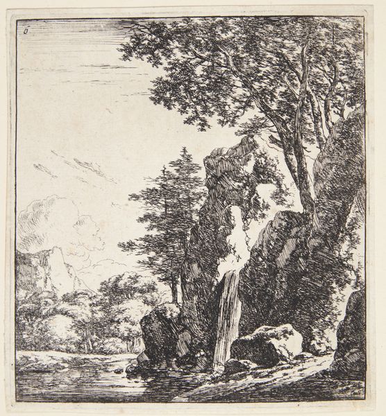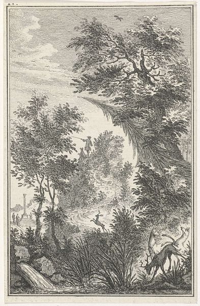 Simon Fokke created this piece called 'Juni,' an etching, during the 18th century. It evokes the month of June through a landscape replete with classical motifs. Note the prominent waterfall, a symbol of nature's power and purity. Waterfalls often appear in art as metaphors for cleansing, renewal, and the untamed forces of the natural world, stretching back to ancient Roman depictions of grottoes and fountains. Consider how this motif resonates with the viewer on a subconscious level, tapping into a deep-seated longing for harmony with nature. In contrast, the image includes a distant castle. This symbol, which has evolved over time, can evoke a sense of aspiration, dreams, and the sublime, engaging us on a deep, perhaps even subconscious, level. In the cyclical progression of symbols, we see how the waterfall and the castle have resurfaced and evolved to take on new meanings across history.