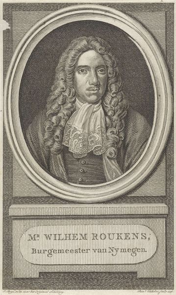 Pieter Tanjé created this engraving of Dominicus Jauna. Notice how Tanjé uses the oval frame to compress the image and bring the subject intimately close. The engraver’s sharp, controlled lines capture Jauna's likeness with striking detail. Look at the way the light plays across his powdered wig, and how this contrasts with the dark hatching that models his face and clothing. Tanjé masterfully manipulates light and shadow to create depth. Jauna is holding a letter, a tool used to present his status and intellect through the semiotic system of the era. This inclusion is not merely representational but functions as a signifier of Jauna’s character. This portrait exemplifies the 18th-century desire to capture the essence of an individual through careful observation and structured artistic techniques. It leaves us contemplating how form and content interact to create meaning.